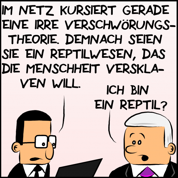 Manche Verschwörungstheorien sind so gefinkelt, denen sitzen auch mächtige Menschen auf. In Hebel der Macht enthüllt Rafael Buchegger jede Woche exklusiv für MOMENT die Wahrheit über die Machenschaften des Premierministers Oktavian Plenk. Diesmal: Der Premierminister ist ein Reptiloid.