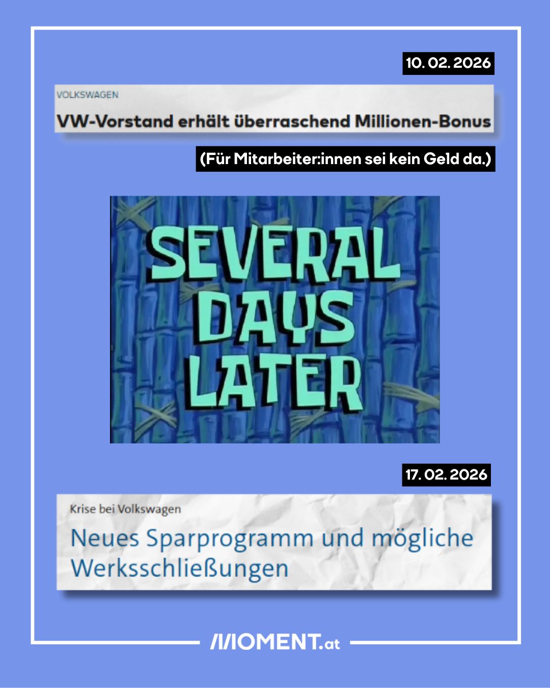 MOMENT.at arbeitet unabhängig von Parteien, Banken und Konzernen. Damit das möglich ist, brauchen wir die Hilfe möglichst vieler Menschen. Alle Möglichkeiten, uns zu unterstützen, findest du hier. Jeder Euro macht einen Unterschied. Danke!