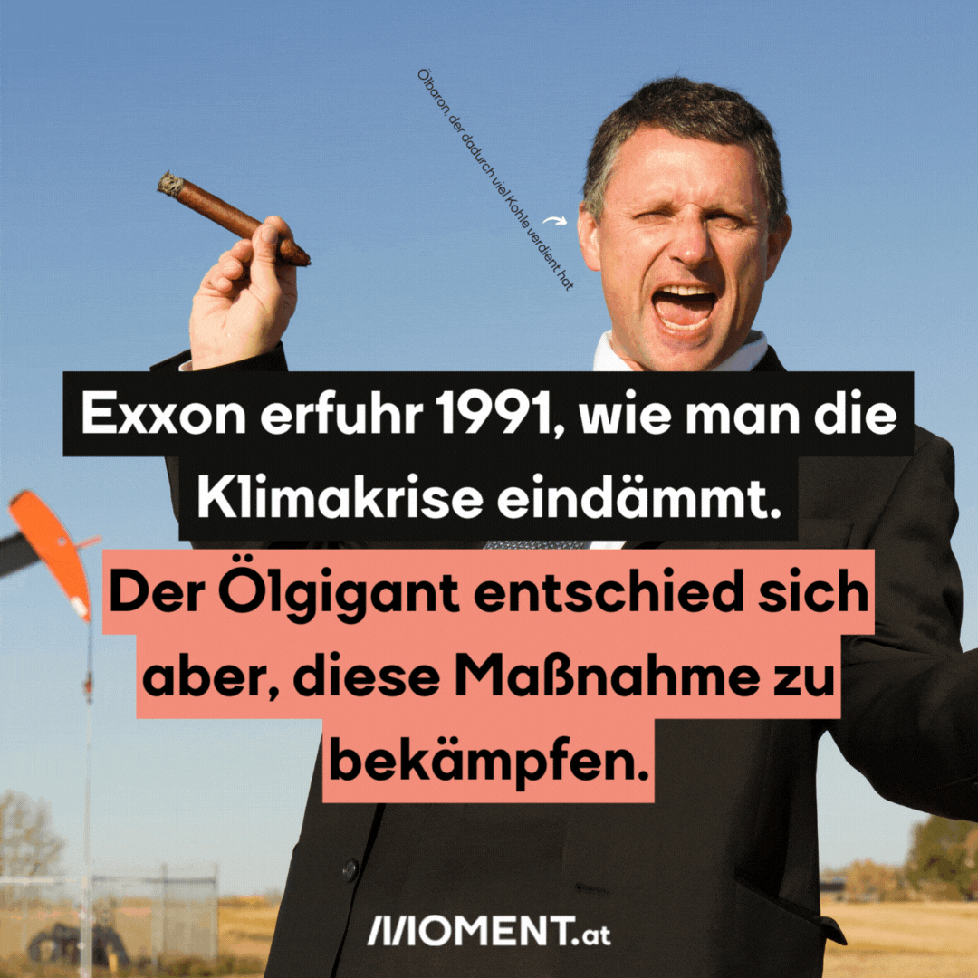 Doch Exxon sah seine Gewinne bedroht. So entwickelte das Unternehmen eine Strategie, um CO2-Steuern in der Öffentlichkeit schlecht zu machen. Obwohl das Unternehmen zu diesem Zeitpunkt wusste, dass sie der beste Weg sind, um die Klimakrise zu bekämpfen.