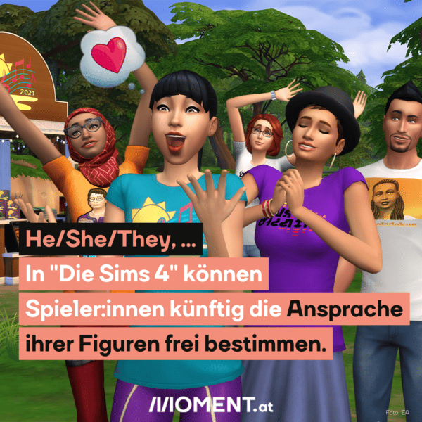 Neben "er" und "sie" gibt es auch die Auswahlmöglichkeit "they", für die es bisher übrigens keine allgemeingültige deutsche Übersetzung gibt. Wer damit unglücklich ist, kann sich auch eigene Pronomen überlegen. Die Sims-Welt ist damit vielen Teilen der realen Welt ein paar Schritte voraus. Laut Herstellern sei das ein weiterer Schritt in Richtung eines inklusiveren Spielerlebnisses. Die Funktion soll bald auf andere Sprachen ausgeweitet werden.
