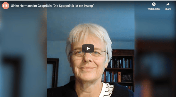 Um die Corona-Krise zu bekämpfen, müssen die Staaten jetzt Geld in die Hand nehmen. "Die Sparpolitik ist ein Irrweg", sagt die Wirtschaftsautorin Ulrike Herrmann. Damit die Wirtschaft nach Corona wieder wächst, sollten nicht die Unternehmen entlastet, sondern die Kaufkraft der Menschen erhöht werden - und das gehe nur mit höheren Löhnen. Jetzt zeige sich, dass die wichtigen Berufe "nicht Immobilienspekulanten sind, sondern Pflegekräfte". Nach der Krise müssten Vermögen endlich richtig besteuert, Steuerschlupflöcher geschlossen werden. Um die Klimakrise zu bekämpfen, müssten wir uns vom ewigen Wachstum verabschieden. Hier das ganze MOMENT-Gespräch über die Folgen der Corona-Krise zum Nachschauen.