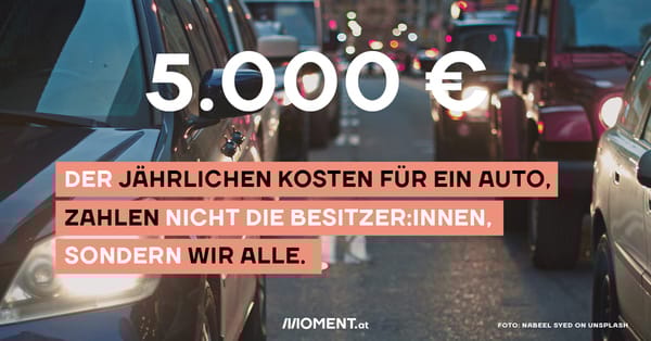 Eine neue Studie ging dem nach und untersuchte anhand von 33 Faktoren, wie viel Kosten im Laufe von 50 Jahren, also quasi einer Autofahrer:innen-Karriere, zusammenkommen. Unter Berücksichtigung aller Kosten, die von den Besitzer:innen etwa durch Steuern gezahlt werden, kamen sie zu dem Ergebnis: Wir alle subventionieren jedes Auto pro Jahr mit rund 5.000 Euro. Die Studie und einen lesenswerten Bericht dazu, findet ihr hier.