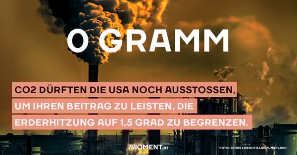 Das geht aus Zahlen der Plattform showyourbudgets.org hervor. Diese errechnet für jedes Land abhängig von der Zahl der Einwohner:innen, bis wann es klimaneutral sein muss, um die Klimaziele zu erreichen. Die USA sind der historisch größte CO2-Produzent der Erde. Europa sollte allerdings keine Empörung vortäuschen. Auch Österreich müsste seinen CO2-Ausstoß bis 2029 auf 0 runterbringen. Über diese Idee wird hierzulande nicht einmal gesprochen.