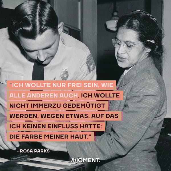 Im Dezember 1955 hatte Rosa Parks genug. Auf dem Weg nach Hause stand sie im Bus nicht auf, nachdem ein weißer Fahrgast sie aufgefordert hatte, für ihn Platz zu machen. Dieser Moment wurde ein Symbol für die Bürgerrechtsbewegung der Schwarzen AmerikanerInnen in den USA. Ein 381 Tage langer Busboykott folgte.