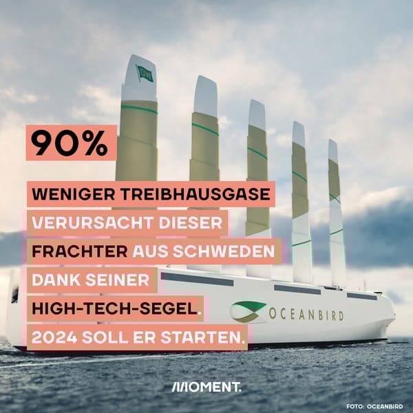 3% der menschengemachten CO2-Emissionen kommen aus der Schifffahrt. Deshalb ist es eine gute Nachricht, dass ein schwedischer Frachter kurz vor der Fertigstellung zu sein scheint, der 90% weniger Emissionen verursacht. Zum Einsatz kommt dafür eine eigentlich alte Technologie: Segel. (Okay: Es sind Hightech-Segel.)