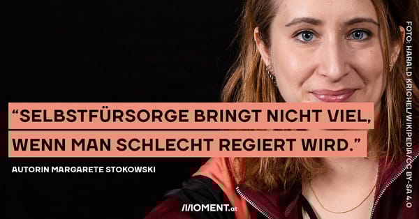 Egal ob der Schutz vor dem Coronavirus, der Kampf gegen eine völlig verrückte Vermögensverteilung auf unserer Welt oder die Abwehr der Klimakatastrophe. Unser Verhalten als einzelne Menschen ist dabei wichtig, aber allein kommen wir gegen diese Probleme auch nicht an. Da hilft keine Selbstoptimierung der Welt. Es braucht gemeinsame Maßnahmen durch die Politik. Das sagt auch die Autorin Margarete Stokowski. "Selbstfürsorge bringt nicht viel, wenn man schlecht regiert wird", meint sie.