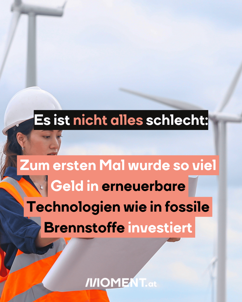 Dabei wäre viel mehr Geld notwendig, um uns in Richtung Klimaneutralität zu bewegen. 4,5 Billionen Dollar müssten jedes Jahr in diesen Bereich fließen, um das bis 2050 zu erreichen.