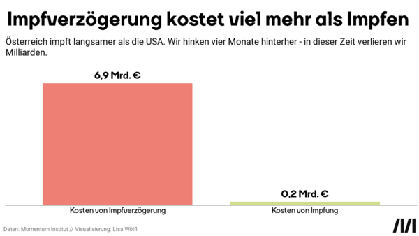 Die schleppende Impfkampagne in Österreich kostet uns rund 7 Milliarden Euro. Die ganze Bevölkerung mit Biontech durchzuimpfen, kostet hingegen nur 0,2 Milliarden Euro. Nach aktuellem Stand hinken wir vier Monate hinter den USA her. In diesen Monaten verlieren wir Milliarden. Das liegt auch daran, dass die EU Impfstoffe weiter an andere Länder liefert. Was hätte mehr Egoismus daran geändert? Das liest du hier.