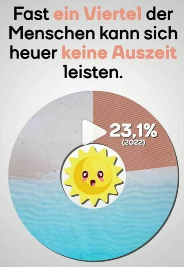 Wo fährst du heuer auf Urlaub hin? Für rund ein Viertel der Menschen in Österreich stellt sich die Frage erst gar nicht. Sie haben nicht genug Geld, um in den Urlaub zu fahren. Die Arbeitsbelastung, der man mit einem Urlaub entkommen will, wird dadurch aber natürlich trotzdem nicht weniger. In einer Studie der Statistik Austria gibt außerdem jede:r Siebte an, mit der Teuerung finanziell überfordert zu sein und zum Beispiel abgenutzte Möbel nicht mehr ersetzen zu können. Zudem sagen rund 476.000 Menschen, dass sie sich nicht mehr richtig ernähren können.