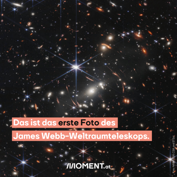 „Das Licht, das du auf einem dieser kleinen Flecken siehst, ist seit 13 Milliarden Jahren unterwegs”, sagt NASA-Chef Bill Nelson am Montag zu US-Präsident Joe Biden. Gemeinsam präsentierten sie das bisher tiefste und schärfste Bild des Weltraums, das je aufgenommen wurde. Im weiten Hintergrund des Bildes sind sogar Galaxien in dem Zustand zu sehen, wie sie kurz (“nur” 600 Millionen Jahre) nach dem Urknall aussahen.