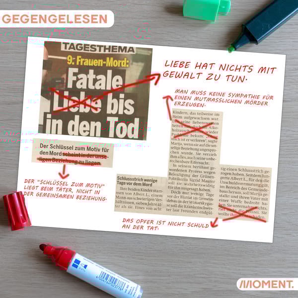 Diese Art der Berichterstattung trägt ihren Teil dazu bei, um solche Taten zu verharmlosen und als Einzelfälle hinzustellen. Dabei ist Gewalt gegen Frauen bei weitem kein isoliertes Ereignis - jede dritte Frau in der EU hat seit ihrem 15. Lebensjahr entweder eine Form von sexueller Belästigung oder andere Formen physischer und psychischer Gewalt erlebt. Auch die Boulevardmedien müssen sich ihrer Verantwortung bewusst werden, damit solche Taten verhindert werden können. Welche Fehler Printmedien in ihrer Berichterstattung immer wieder machen und wie man es besser machen sollte, haben wir in diesem Artikel zusammengefasst.