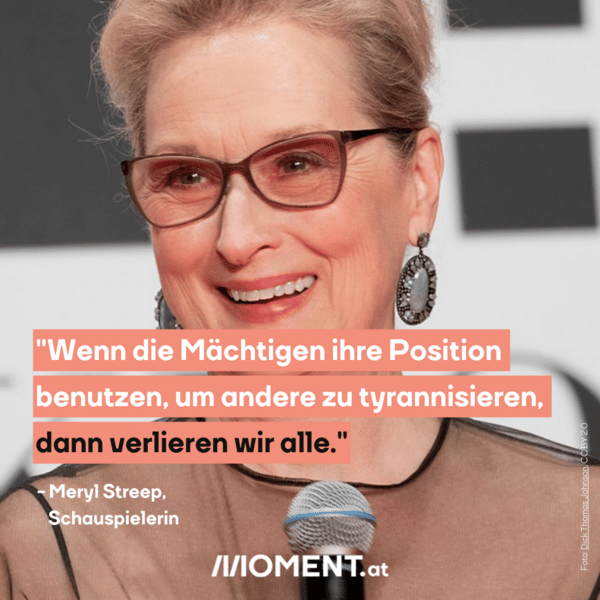 Als sie im Jahr 2017 bei den Golden Globes auftrat, ließ sie kein gutes Haar am damaligen US-Präsidenten Donald Trump. Dieser habe einen Instinkt, andere zu demütigen, so Streep. Mit ihrer Rede, aus der auch das heutige Zitat stammt, setzte sie ein Zeichen gegen jenen Mann, der bereits damals mit spalterischen, rassistischen und sexistischen Aussagen aufgefallen war. Glücklicherweise wurden viele Projekte aus der Ära Trump, wie der Ausstieg aus dem Pariser Klimaabkommen, wieder zurückgenommen.