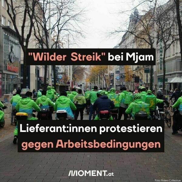 Am Sonntag haben sie sich deshalb in Wien zu Mittag versammelt, um für mehr Respekt, gerechtere Löhne und zumutbare Arbeitsbedingungen zu demonstrieren. Unter dem Motto "Heute wird kein Essen ausgeliefert" zogen Dutzende von ihnen auch durch die Mariahilferstraße. Für das kommende Wochenende kündigt das "Riders Collective" gegenüber MOMENT.at weitere Proteste an. Die Initiative versucht Arbeitskräfte in der "Plattform-Ökonomie" mit der Gewerkschaft zu verbinden und über ihre Rechte aufzuklären.