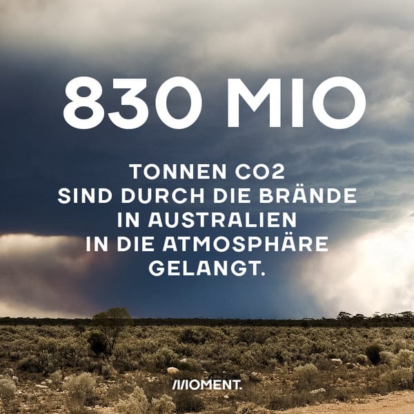 Infolge der Brände sind zwischen September 2019 und Februar 2020 rund 830 Millionen Tonnen CO2 in die Atmosphäre gelangt.