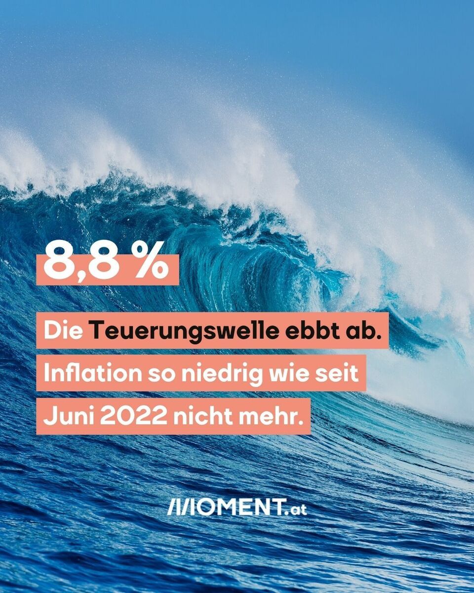 Die Teuerungswelle ebbt langsam ab. Im Mai gab es laut Schnellschätzung Statistik Austria eine Inflation von 8,8 Prozent. Das ist der niedrigste Wert seit Juni 2022. Im April lag sie noch bei 9,7 Prozent. Von September bis Februar war sie zweistellig. Grund für die den Rückgang der Inflationsrate seien vor allem billige fossile Treibstoffe. Auch bei Nahrungsmitteln werde der Preisauftrieb schwächer.