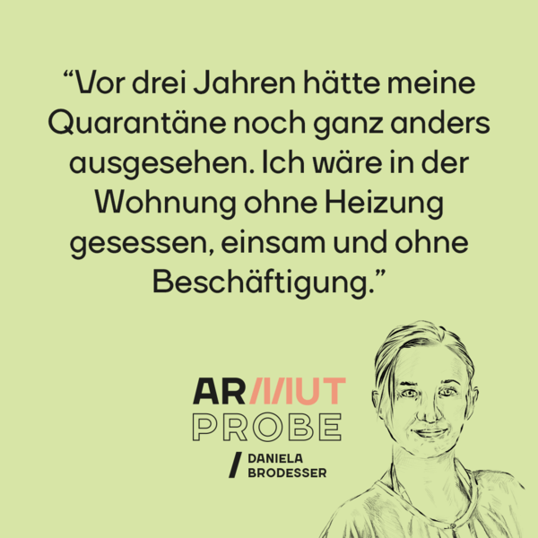 Unsere Kolumnistin Daniela Brodesser ist seit zehn Tagen in Quarantäne. Sie lebt mit ihrer Familie knapp an der Schwelle zur Armutsgefährdung, aber fühlt sich momentan trotzdem unglaublich privilegiert. Vor ein paar Jahren hätte die Isolation für sie noch ganz anders ausgesehen.
