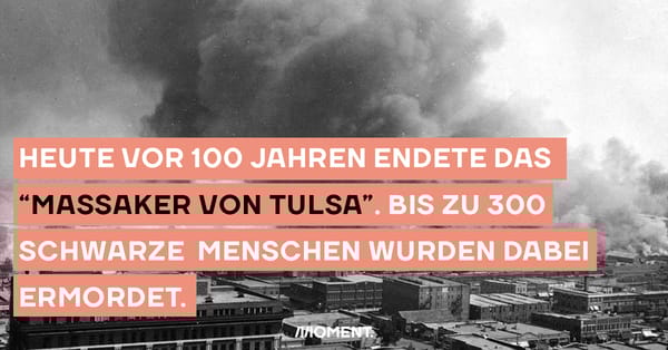 Von 31. Mai bis zum 1. Juni 1921 kam es in Tulsa, Oklahoma, zu einem der schlimmsten Fälle von Lynchjustiz in der US-amerikanischen Geschichte. Dabei wurde das Stadtviertel Greenwood, wo aufgrund der Rassentrennungsgesetze nur Schwarze Menschen lebten, fast vollständig zerstört. Ein Mob ermordete bis zu 300 Menschen, mehr als 8.000 Personen wurden dadurch obdachlos.