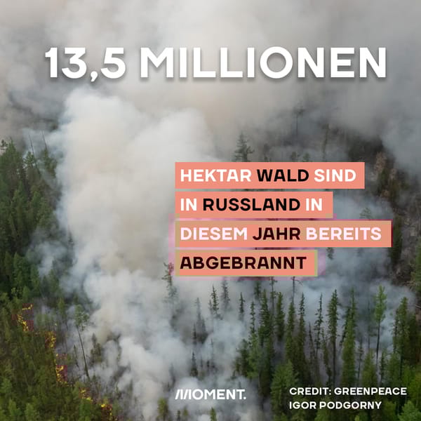 In Russland sind in diesem Jahr laut der Umweltorganisation Greenpeace bereits mehr als 13,5 Millionen Hektar Naturfläche abgebrannt. Das ist eine Fläche, die größer als Griechenland ist. Im Frühling seien vor allem in Sibirien Feuer auf Flächen und in Wäldern ausgebrochen, die keinen eindeutigen rechtlichen Status hätten. Deshalb fühle sich für sie niemand zuständig und die behördliche Statistik falle auch weniger schlimm aus. Grund für die Brände ist der Klimawandel und das warme und trockene Wetter.