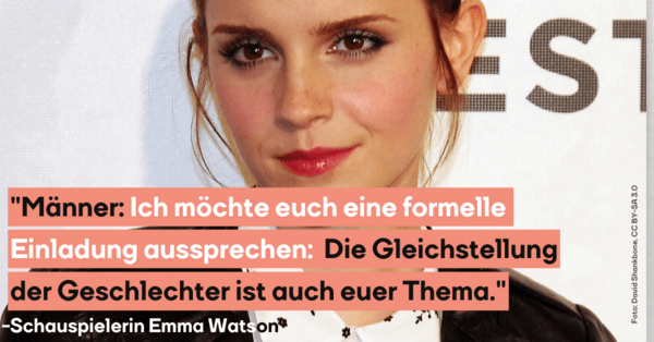 Doch auch auf Männern lasten geschlechterspezifische Erwartungen, die ihnen schaden. Daher richtete Watson in ihrer Rede vor der UNO auch einen ausdrücklichen Appell an sie: “Männer: Ich möchte euch eine formelle Einladung aussprechen: Die Gleichstellung der Geschlechter ist auch euer Thema.”