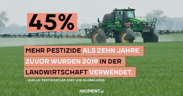 In Österreich wird immer mehr davon auf die Felder gesprüht. Das zeigt der neue Pestizidatlas, der von der Umweltschutzorganisation Global 2000 herausgegeben wird. Im Jahr 2019 wurden demnach pro Hektar landwirtschaftlicher Fläche 45 Prozent mehr an Pflanzen- und Tiergift ausgebracht als noch zehn Jahre zuvor - im Schnitt 3,5 Kilogramm Pestizid pro Hektar. Über das Jahr werden in Österreich 13.395 Tonnen solcher Pestizide auf Feldern und Wiesen verteilt.