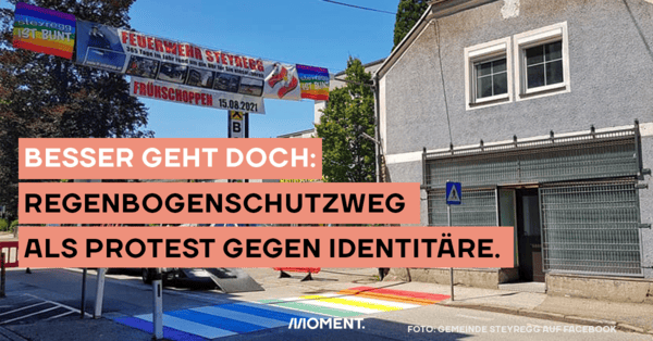 Die Gemeinde Steyregg geht jetzt mangels anderer Möglichkeiten auf ihre Art dagegen vor. Sie hat den Schutzweg vor dem Gebäude, das sich im Zentrum an einer stark befahrenen Straße befindet, in Regenbogenfarben bemalt. Damit will sie “ein Zeichen für Offenheit, Gedankenweite und Toleranz” setzen, wie der Account der Gemeinde auf Facebook schreibt.