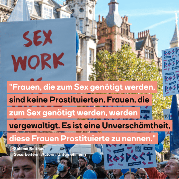 Unser Zitat des heutigen Tages stammt von Salomé Balthus, einer deutschen Sexarbeiterin und Autorin. Sie setzt sich gegen für die Rechte von Prostituierten und gegen deren Stigmatisierung ein. Balthus macht auch einen wichtigen Unterschied zwischen Freiwilligkeit und Zwang: “Frauen, die zum Sex genötigt werden, sind keine Prostituierten. Frauen, die zum Sex genötigt werden, werden vergewaltigt. Es ist eine Unverschämtheit, diese Frauen Prostituierte zu nennen.”
