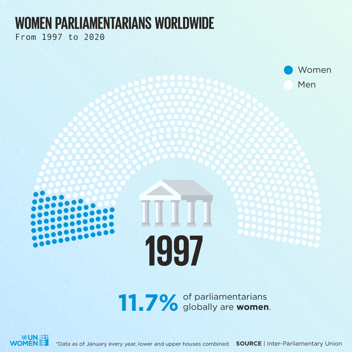 Die Hälfte der Welt sitzt nur zu einem Viertel im Parlament. Weltweit betrachtet steigt der Anteil von Politikerinnen zwar, von halbe-halbe im Parlament sind wir aber noch weit entfernt. UN Woman haben dieses und andere Fakten in anschaulichen Animationen aufbereitet.