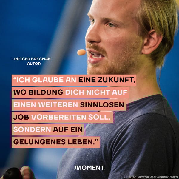Der Autor Rutger Bregman setzt sich für ein bedingungsloses Grundeinkommen ein und meint, dass Utopien auch für Realisten da sind. Er sagt: "Ich glaube an eine Zukunft, wo Bildung dich nicht auf einen weiteren sinnlosen Job vorbereiten soll, sondern auf ein gelungenes Leben."