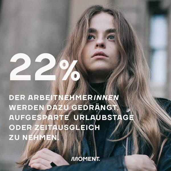 Wer jetzt noch einen Job hat, zählt zu den Glücklichen. Jede/r Fünfte berichtet davon, dass er gezwungen wird Urlaub oder Zeitausgleich zu verbrauchen. Das ist natürlich nicht erlaubt und bedeutet für die Zeit nach dem Schock, muss durchgearbeitet werden.