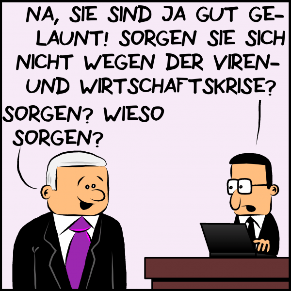 Christoph Boschan, Chef der Wiener Börse, rechtfertigt, warum in Zeiten von Corona-Kurzarbeitsgeld und Milliardenhilfen aus Steuergeldern große Unternehmen trotzdem weiterhin Gewinne an ihre AktionärInnen ausschütten. Wir haben für euch die Pausetaste gedrückt und erklären, was er wirklich meint.