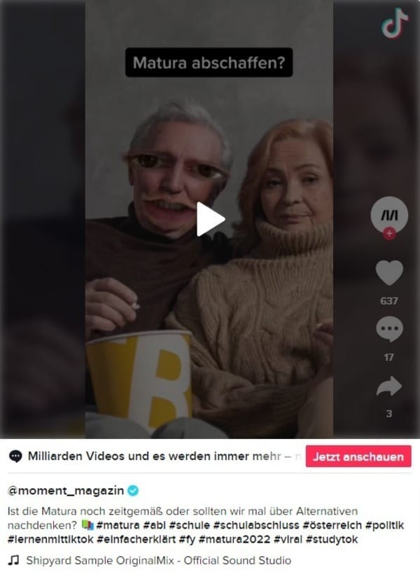 Immer wenn junge Menschen sich fragen, ob die Auswendiglernerei für die Matura wirklich der Gipfel des Schulsystems sein kann, kommt irgendjemand daher und mault über die faule Jugend. In unserem aktuellen Tiktok-Video gehen wir der Frage nach.