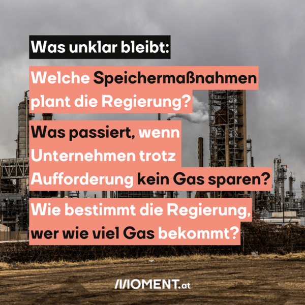 In der ersten Stufe befinden wir uns seit 30. März. Seitdem tagt regelmäßig ein Krisenstab. Der beobachtet, wie viel Gas in Österreich wohin fließt. Es werden Maßnahmen getroffen, die die gespeicherte Gasmenge erhöhen sollen. Allerdings sagt die Regierung nicht, welche Maßnahmen das sind. Unklar ist auch, ob und woher Österreich Alternativen für russisches Gas beziehen kann.
