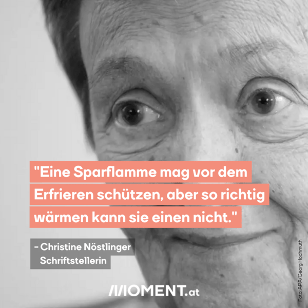 Das Zitat des Tages zu ihren Ehren entstammt Nöstlingers Buch "Eine Frau sein ist kein Sport", der im Jahr 2011 erschien: "Eine Sparflamme mag vor dem Erfrieren schützen, aber so richtig wärmen kann sie einen nicht."