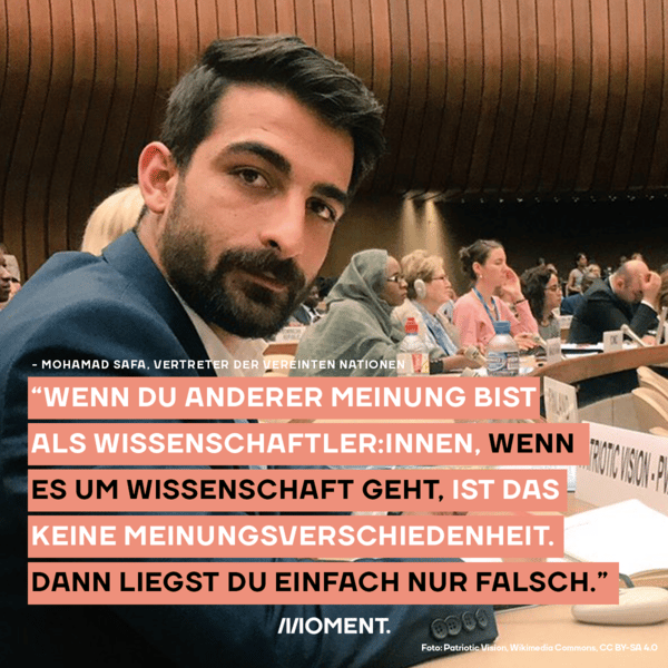 Mohamad Safa ist libanesischer Vertreter der Vereinten Nationen und über diese Tätigkeit hinaus aktiv in den Bereichen Menschenrechte und Umweltschutz. Auch in den sozialen Medien informiert er über diese Themen Menschenrechte, Klimakrise, Armut, Rassismus und Ungleichheit. Auf seinem Twitter-Account folgen ihm knapp 150.000 Menschen. Safa macht deutlich, dass wir nicht nur wegen COVID-19 in einer globalen Krise stecken, sondern wegen der Klimakrise, Armut, Rassismus, Ungleichheit und Unrecht. „Das sind die Krisen eines Systems, das nicht länger funktioniert“.