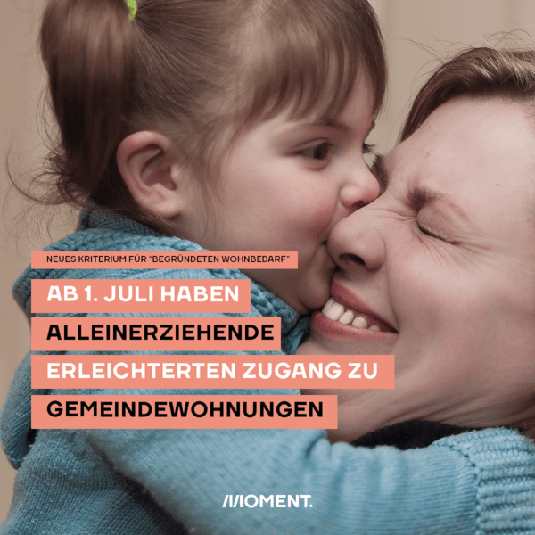 Ab 1. Juli gilt für Alleinerziehende bei Wiener Wohnen ein begründeter Wohnbedarf. Damit erleichtert sich ihr Zugang zu Gemeindewohnungen und geförderten Wohnungen. Gute Nachrichten für Ein-Eltern-Familien, die am Ende des Monats jeden Euro umdrehen müssen. Und das sind einige. In Österreich ist jede siebte Person armutsgefährdet. 94.000 von ihnen sind alleinerziehende Mütter und Väter.