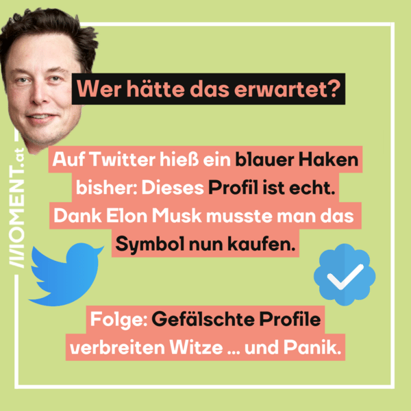 Seit Elon Musk den Kurznachrichtendienst Twitter übernommen hat, herrscht dort das blanke Chaos. Musk kehrt mit eisernem Besen und führt offenbar nicht ganz zu Ende gedachte Neuerungen ein. Der „blaue Haken“ hinter einem User stand bei Twitter bisher für: Dieses Profil ist echt. Nun konnte man sich das Symbol um 8 Dollar kaufen. Die Folge: Dutzende Fake-Accounts von Unternehmen und Prominenten tauchten in der Twitter-Welt auf. Das brachte zahlreiche Firmen in echte Bedrängnis, wie wir hier zeigen.