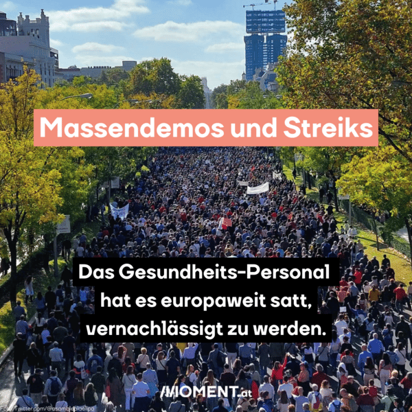 Massendemonstrationen und Streiks: Die Beschäftigten im Gesundheitssektor haben es europaweit satt, vernachlässigt zu werden – und Bürger:innen schließen sich ihnen an. In Madrid gingen am Sonntag laut Organisatoren 670.000 Menschen auf die Straße, um gegen die Sparpläne der konservativen Regionalregierung zu demonstrieren. Demnach solle die Notfallversorgung demnächst zum Teil online durchgeführt werden, weil Personal fehlt, schreibt orf.at.