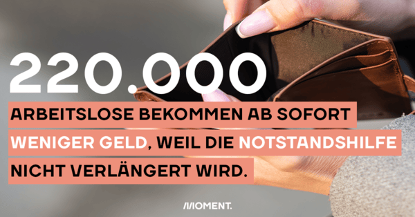 Menschen an der Armutsgrenze wurden durch die Krise besonders stark getroffen. Um sie zu unterstützen hat die Regierung im April 2020 zumindest beschlossen, die Notstandshilfe zu erhöhen. Doch diese Maßnahme läuft nun aus und wird vorerst nicht verlängert. Betroffen sind 220.000 Personen in Österreich, die nun mit bis zu 120€ im Monat weniger auskommen müssen. Für den Staat würden die Kosten dieser Erhöhung kaum ins Gewicht fallen, für die Betroffenen ist das jedoch existenzbedrohend.