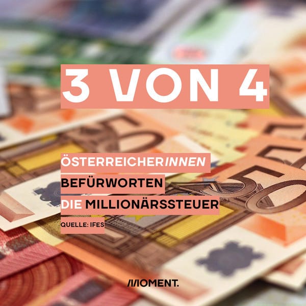 Eine aktuelle Umfrage zeigt, dass ÖsterreicherInnen die Millionärssteuer klar befürworten. 73 Prozent finden, dass Vermögensanteile über einer Million Euro besteuert werden sollten, auch der Besteuerung von Millionenerben stimmen 72 Prozent der Befragten zu. Laut der Umfrage glauben darüber hinaus 90 Prozent, dass sich sehr reiche Menschen politische Einflussnahme erkaufen können.