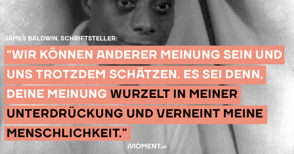 Anlass zum Feiern ist das allerdings nur bedingt. Nach wie vor existieren Staaten, in denen Minderheiten unterdrückt oder verfolgt werden. Doch Menschenrechtsverletzungen geschehen nicht nur in anderen Ländern. Auch bei uns werden die Rechte immer wieder infrage gestellt. Dabei sind Menschenrechte keine Diskussionsgrundlage, über die man streiten kann. Das hat James Baldwin, der viel über die Identität von Schwarzen und Homosexuellen geschrieben hat, so zusammengefasst: "Wir können anderer Meinung sein und uns trotzdem schätzen. Es sei denn, deine Meinung wurzelt in meiner Unterdrückung und verneint meine Menschlichkeit."