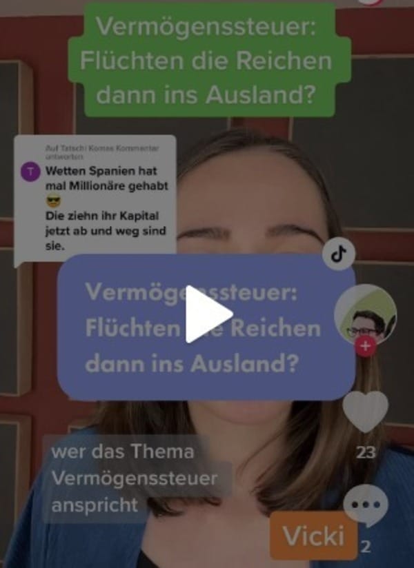 Wie finanziert man so einen (verbesserten) Sozialstaat oder Investitionen in eine klimafitte Zukunft? Zum Beispiel über die Besteuerung von großen Vermögen. Darauf verzichtet vor allem Österreich recht stur und man hört immer wieder dieselben Argumente dazu. Eines davon: Die Reichen wanderten halt einfach aus, würde man sie besteuern. Kürzlich bekamen wir das auch auf Tiktok wieder zu hören. Unsere Antwort gibts zur Wiederverwendung hier: