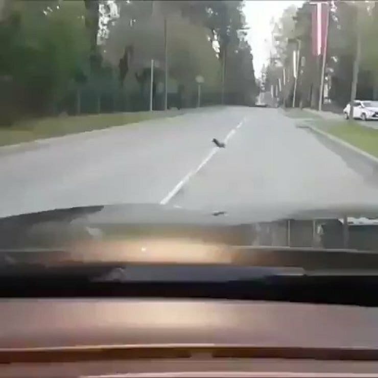 Manche muss man einfach zu ihrem Glück zwingen. Wie diese Krähe, die einen Igel regelrecht vor sich hertreibt, damit er rasch über die Straße geht. Wir wollen mal davon ausgehen, dass der Vogel tatsächlich das Wohl des Stacheltieres im Sinn hatte und ihn nicht in Ruhe abseits des Verkehrs verspeisen wollte.