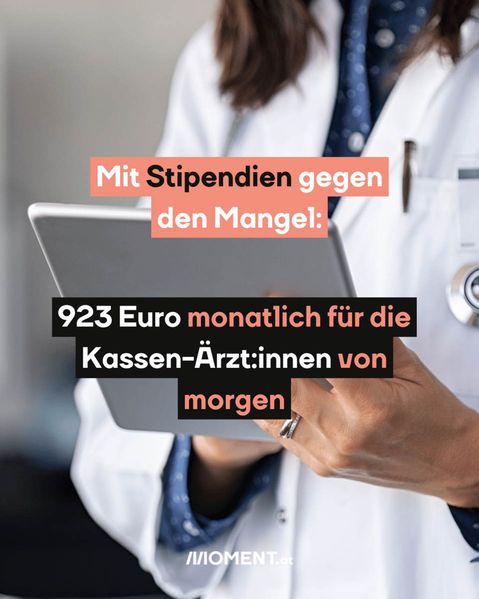 Investiere schon heute in die Kassen-Ärzt:innen von morgen: Die Österreichische Gesundheitskasse vergibt 50 Stipendien an Medizin-Studierende. Die Stipendiat:innen bekommen 923 Euro monatlich für bis zu dreieinhalb Jahre. Dafür verpflichten sie sich nach Abschluss des Studiums für mindestens 5 Jahre Kassen-Ärzt:innen in einer Bedarfsregion zu werden.