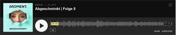 Die erste Staffel des MOMENT Podcast heißt "Abgeschminkt" und erzählt die Geschichte von Sabrina, einer jungen Studentin, die in der Beauty-Branche jobbt. Weil sie die Bedingungen in ihrer Arbeit verbessern will, macht sie sich einen mächtigen Feind. Und ziemlich schnell stellt sich heraus: Ihr Kampf steht für uns alle.