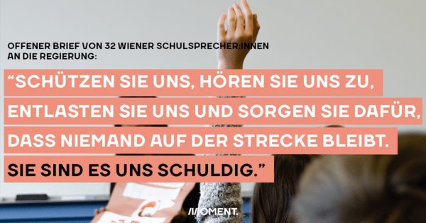 Denn viele Schüler:innen fühlen sich von der Politik im Stich gelassen. Das neue Schuljahr hat in ganz Österreich begonnen, doch von notwendigen Corona-Maßnahmen ist nur wenig zu sehen. Die versprochenen Luftfilter sind etwa nur in den wenigsten Klassen angekommen, auch generelle Maskenpflicht gibt es keine mehr. Dabei ist die Inzidenz gerade bei jungen Leuten enorm hoch. Und aus anderen Ländern ist bekannt, dass die Infektionszahlen nach der Schulöffnung stark ansteigen. Die Schulvertreter:innen fordern in ihrem Brief, dass die Politik ihrer Verantwortung gerecht wird.
