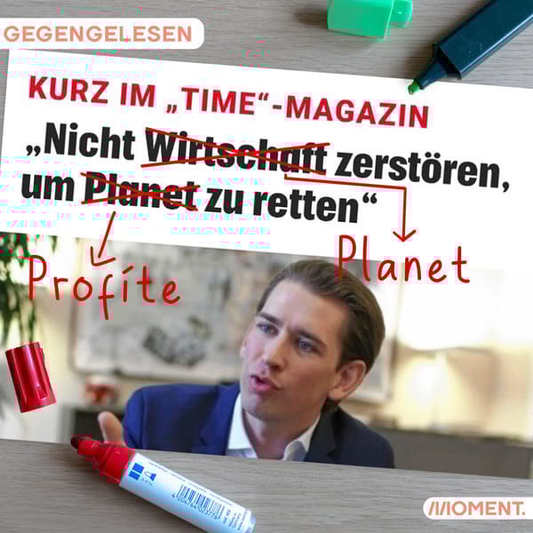 Sebastian Kurz hat im Time-Magazin einen Text veröffentlicht, in dem er die Herausforderungen unserer Zeit skizziert und was daher seiner Meinung nach zu tun ist. Die Stärkung der Marktwirtschaft, so der Kanzler, ist das Mittel der Wahl, denn "Wir werden keine Fortschritte erzielen, wenn wir plötzlich versuchen, das, was wir heute tun, zu ändern." Neueste Forschungsergebnisse zeigen, dass wir die Erderhitzung um 1,5 Grad wahrscheinlich in den kommenden fünf Jahren erreichen. Weiter wie bisher ist schlicht keine Option mehr: Auf einem toten Planeten macht niemand Profit.