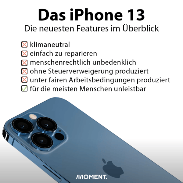 Etwa mit Zulieferfirmen, die Zwangsarbeiter:innen einsetzen. Oder mit der Zusammenarbeit mit einem totalitären Regime, das jetzt wesentlichen Einfluss auf die Entscheidungen der Firma hat. Nicht vergessen darf man natürlich auch, dass das Unternehmen jahrelang praktisch keine Steuern auf seine Verkäufe gezahlt hat. Und du willst dein defektes iPhone schnell und billig reparieren? Pech gehabt: Apple macht es nicht nur seinen Kund:innen, sondern auch Reperaturanbieter:innen mit jeder Version schwerer, das iPhone zu reparieren. Immerhin will Apple bis 2030 klimaneutral werden. Ob das Unternehmen das tatsächlich umsetzen kann, ist laut Expert:innen jedoch unsicher.