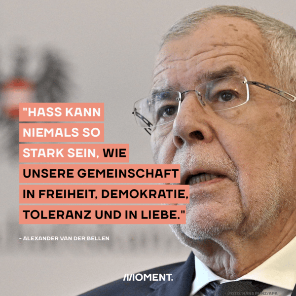 Unseren Bundespräsidenten kennen wir schon. (Das war damals auch knapp, erinnerst du dich?) Die österreichische Spitzenpolitik hat sich gestern mit einer tröstlich langen Reihe an ziemlich geschmackvollen, bedachten Stellungnahmen positiv ausgezeichnet. Die Situation wurde nicht für politisches Kleingeld ausgenutzt, die richtigen Worte großteils gefunden. Den schönsten Satz hatte aber Alexander Van der Bellen. Der Präsident erinnerte in seiner Fernsehansprache die geschockte Bevölkerung unseres Landes an unsere Stärken. "Hass kann niemals so stark sein, wie unsere Gemeinschaft in Freiheit, Demokratie, Tolaranz und Liebe", sagte er. Und recht hatte er.