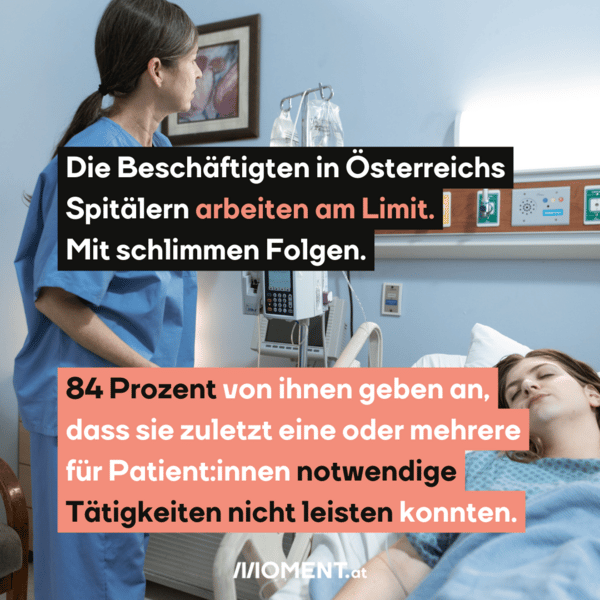 Bei den Beschäftigten in Österreichs Spitälern herrscht der Ausnahmezustand. Weil zu wenig Personal da ist, sind sie völlig überlastet. Das hat Folgen - auch für die Patient:innen. In einer Umfrage gaben 84 Prozent der Beschäftigten an, dass sie oder ihr Team in den vergangenen zwei Wochen für Patient:innen notwendige Tätigkeiten nicht hätten leisten können. Für das Personal bedeutet das Stress und Frust: 75 Prozent gaben an, den Pflegeberuf verlassen zu wollen, heißt es in der Studie der Karl Landsteiner Universität für Gesundheitswissenschaften. Dabei wird in den Spitälern in den kommenden Jahren viel mehr Personal benötigt.