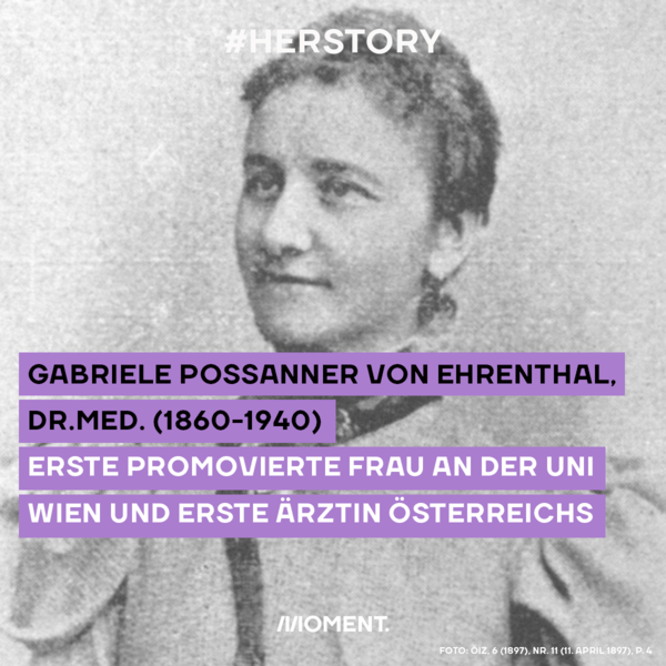 1897 war es dann so weit: Gabriele Possanner von Ehrenthal wurde als erste Frau in der österreichisch-ungarischen Monarchie zur Doktorin der gesamten Heilkunde promoviert. Bereits einen Monat später eröffnete sie ihre eigene Praxis; heute ist der Staatspreis für Leistungen in der Geschlechterforschung nach ihr benannt.